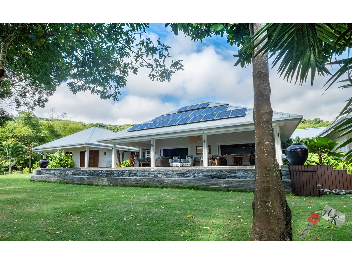 Located within the sought-after Havannah Estate on Efate’s north-west coast, this premium waterfront property comprises two adjoining residential titles totaling approximately 8,259 sqm with direct beach frontage and expansive views across Havannah Harbour toward Lelepa and Moso Islands. The property is improved with a high-spec three-bedroom main residence, a self-contained guest cottage, and extensive outdoor amenities including an infinity-edge swimming pool, landscaped tropical gardens with irrigation, concrete boat ramp, and multiple entertaining areas. Constructed to a very high standard and meticulously maintained, the residence offers approximately 616 sqm of built area including covered terraces, walkways, garage, and ancillary structures. Services include mains electricity supplemented by a private solar system, bore and rainwater storage (approx. 40,000L), sewage treatment plant, and secure gated access. The land gently rises from a white-sand beachfront, providing privacy, elevation, and excellent natural drainage. The property is held under long-term residential leases and is suitable as a private residence, holiday home, or prestige waterfront holding in one of Vanuatu’s most desirable coastal enclaves.